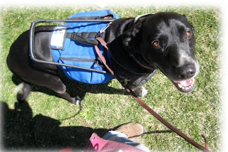After we finished a slew of shots in just the leather guide dog harness and the Powers That Be were pleased as punch with the results, Boomer got retrofitted to his newly introduced stiff leather guide dog harness when I slipped a large Har-Vest underneath and we snapped some more pics.