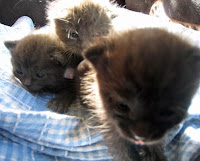 It seems to be an annual event, taking in trios of orphaned kittens, but these guys need a little more help than the three from last year, one of whom, Byrne, still and will continue to always live here. These three need adoptive homes!