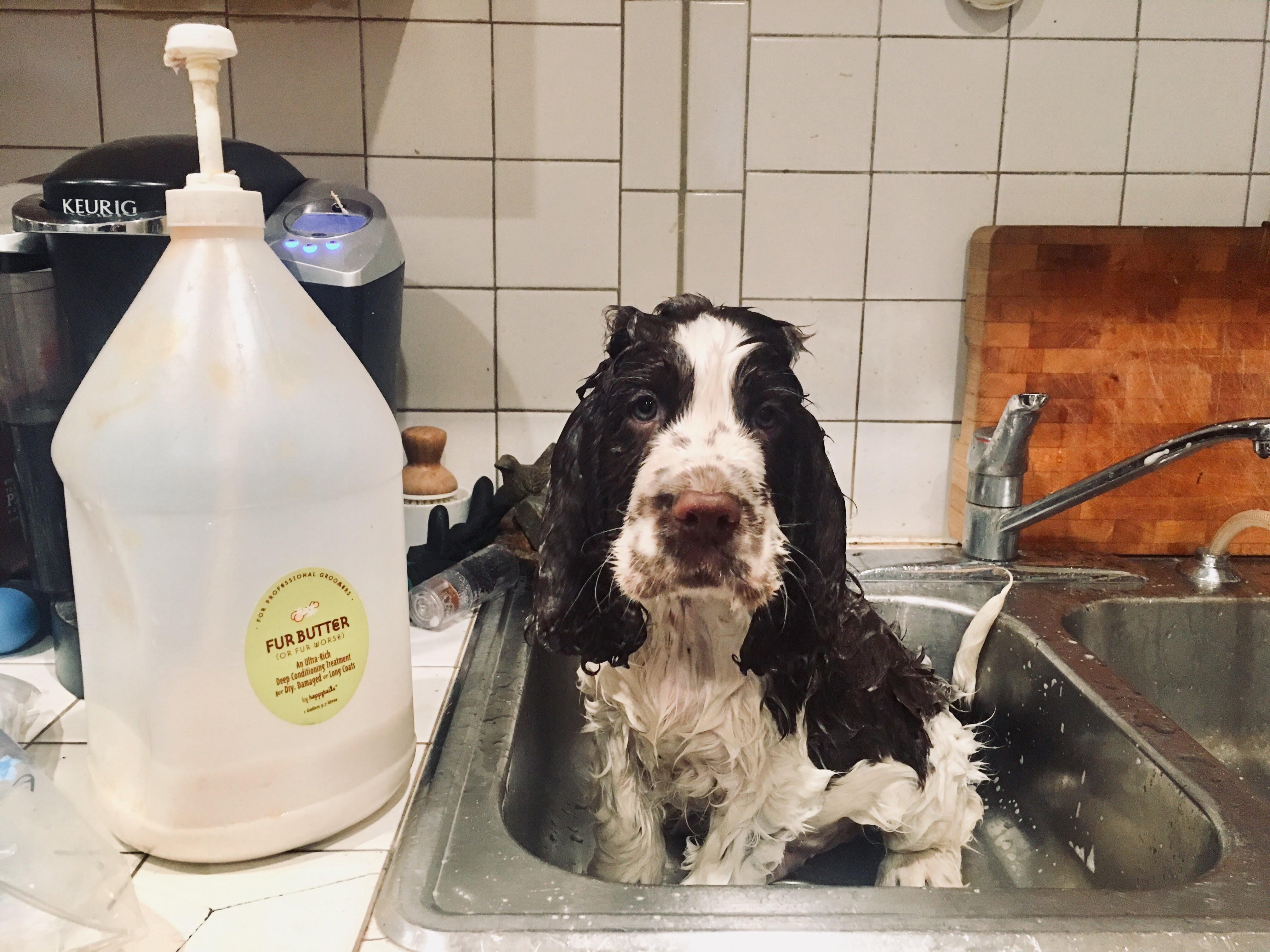 …So after some gentle finagling with studio owners over a few week time (I have a daily yoga practice) and an action plan with a date, we created a unique puppy socialization experience for a good cause. On Saturday, Dec. 15th, carefully choreographing their morning routine (including their first shampoo and conditioner baths!) to make sure they’d be awake and perky and clean, we headed off — the three pups and their 6 month old 1/2 sister Summer — to do Puppy Yoga at my yoga studio. And once again they exceeded my expectations. They were practically magical. Each and every yogi was visited, cuddled and attended by at least one puppy if not all 4 during the hour long class. And we were able to raise funds for The V.A for veterans using service dogs, a cause close to my heart.
